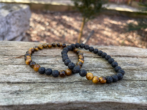 Bracelets élastiques de distance, de couple en Agate noire et Oeil de Tigre