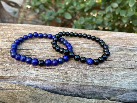 Bracelets élastiques de distance, de couple en Onyx et Oeil de Tigre bleu Turquoise