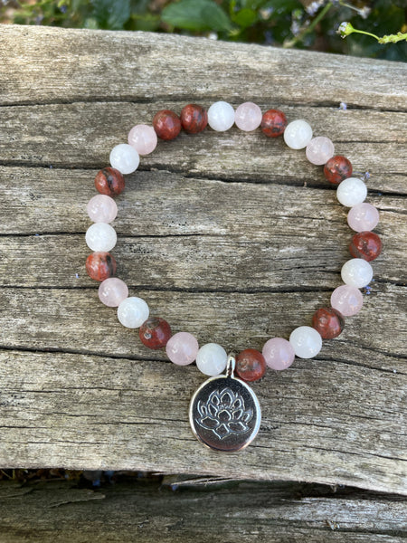 Bracelet élastique de Lithothérapie, Spécial Femme enceinte/ Grossesse. Jaspe Rouge, Pierre de Lune et Quartz Rose