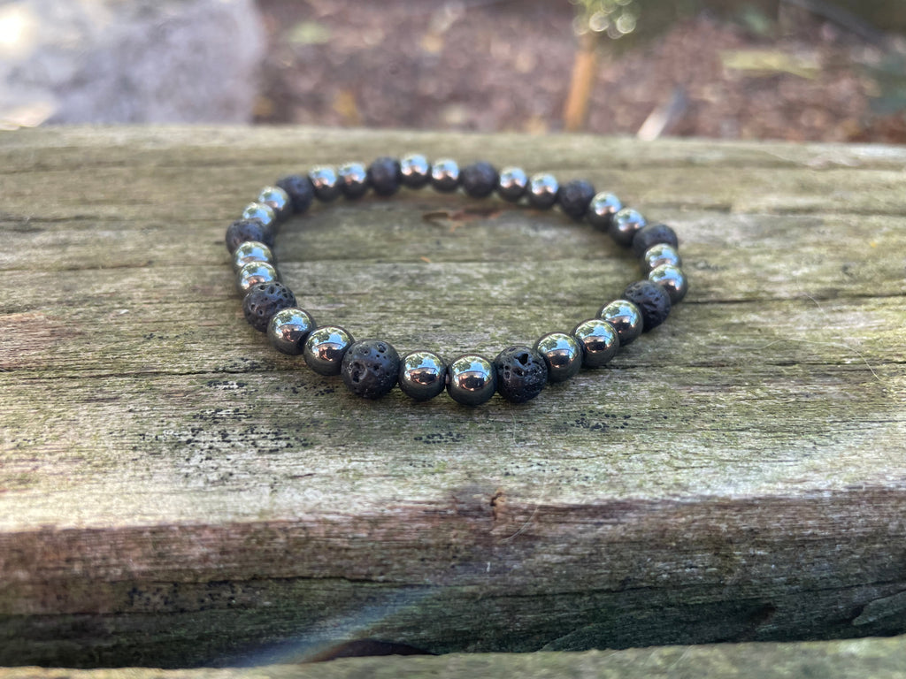 Bracelet élastique de Lithothérapie en Pierre de lave et Hématite