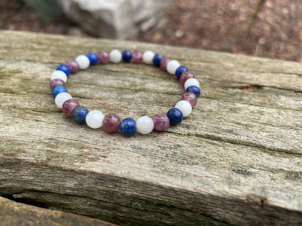 Bracelet spécial troubles liés à la Ménopause Lapis Lazuli, Lépidolite et Pierre de Lune